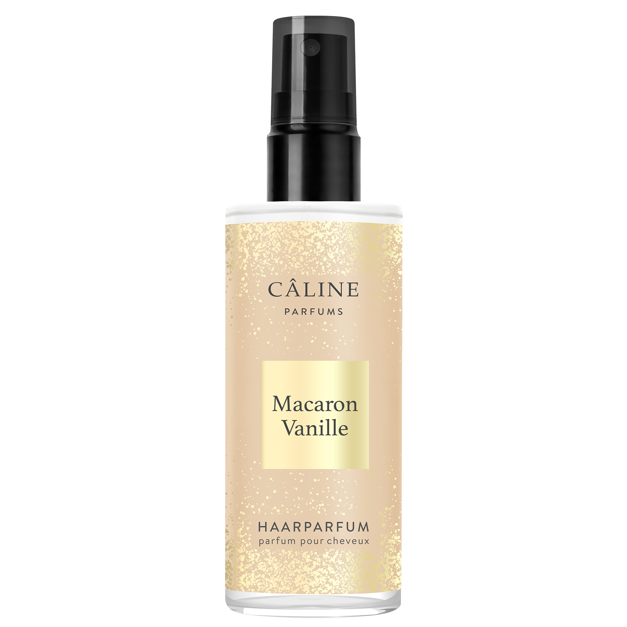 CÂLINE Macaron Vanille Haarparfum betört mit cremigem Karamell, weißen Blüten und warmen Honignoten. Die edle Komposition legt sich leicht ins Haar – zart, köstlich, einfach unwiderstehlich. Vanille, Praline und feiner Moschus verleihen dem Duft eine samtige Tiefe, während das funkelnde Design jedem Moment einen Hauch von Luxus schenkt.
